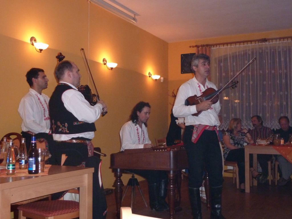 Po loňském úspěchu jsme se i letos rozhodli uspořádat posezení pro všechny milovníky cimbálové muziky spojené s ochutnávkou burčáku. Tentokrát jsme toto posezení pojali trochu více romanticky a na všechny stoly jsme rozmístili ozdobné svícny s čajovými svíčkami. Po úvodních tónech a představení cimbálové muziky Primáš se zhasla hlavní světla sálu a hosté si tak mohli vychutnávat známé i neznámé moravské písničky při světle svíček a vůni burčáku. Na výběr byl letos kromě již osvědčeného bílého burčáku i červený, který sklidil obdiv téměř všech "ochutnávačů". Přestože jsme z důvodu velkého zájmu museli přidat pár stolů a místa k tančení bylo méně než obvykle, některým tanečníkům to vůbec nevadilo a svým tanečním uměním navodili v sále ještě příjemnější atmosféru. Příjemně strávený večer skončil chvíli po půlnoci, kdy se spokojení hosté rozešli do svých domovů (někteří i se zásobami burčáku).