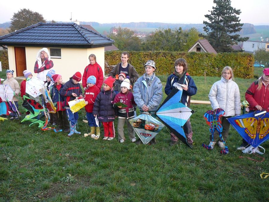 Poslední říjnovou sobotu u nás uspořádalo Centrum pro rodinu Ráj již tradiční podzimní drakiádu. Účastníků se sešlo opravdu hodně - 57 dětí a 45 dospělých. Ti, kteří zrovna nepouštěli draky nebo jim nechtěl letět, si mohli vyzkoušet svou mušku při střelbě ze vzduchovek nebo se zúčastnit dalších jednoduchých soutěží, které pro všechny děti byly připravené. A protože už bylo opravdu podzimní počasí, jistě nikdo nepohrdl horkým svařáčkem, který byl tentokrát připraven i bez alkoholu pro děti nebo teplou klobáskou přímo z udírny. Nakonec byly vyhlášeni nejkrásnější, nejoriginálnější a nejlétavější dráček a jejich majitelé odměněni hezkými dárky. Odměněni nakonec byli i ostatní účastníci, kteří své dráčky proháněli po poli a nebyli vyhodnoceni mezi nejlepšími.