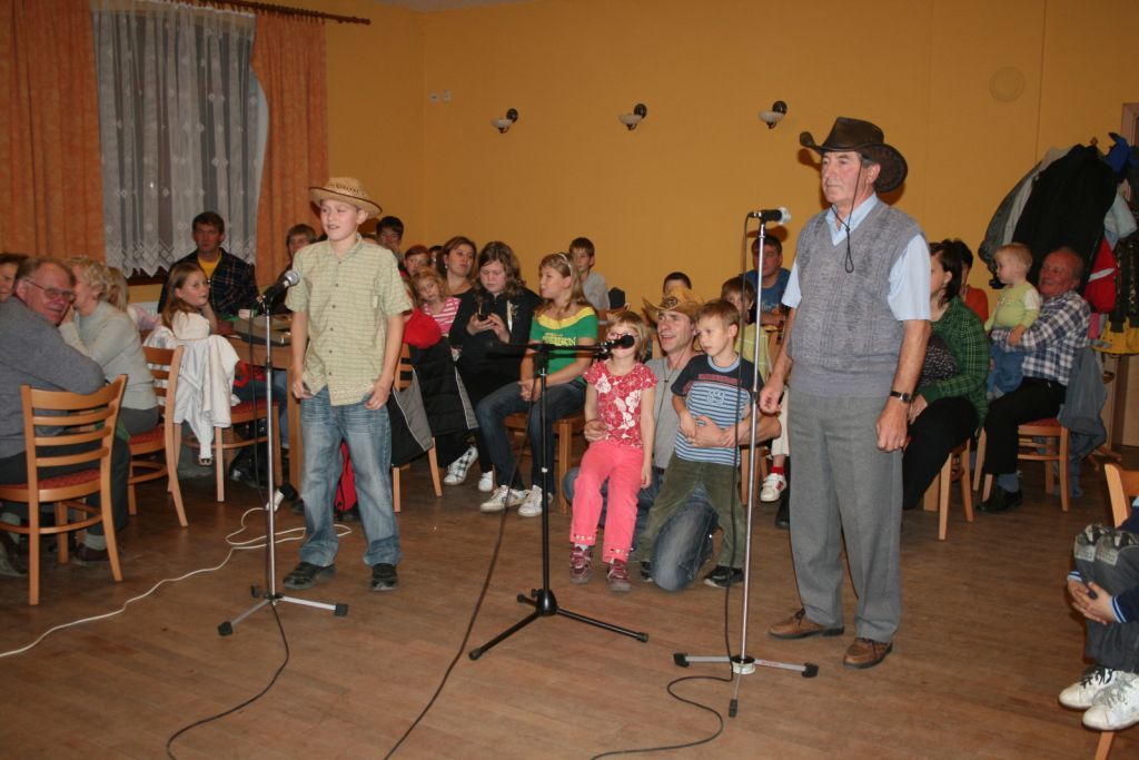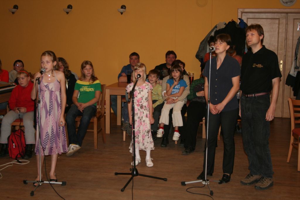 Velkou premiérou v naší obci byla soutěž rodinných týmů ve zpěvu, která se uskutečnila v místním sále hlavně díky organizačnímu zajištění Hanky a Petra Školoudových z Centra pro rodinu Ráj a dalších členů. Do soutěže se přihlásilo sedm rodinných týmů nejen z Hradčan, ale i z jiných obcí a bylo opravdu co poslouchat. Porota měla fakt těžkou práci při hodnocení soutěžících, protože každé vystoupení upoutalo něčím zvláštním, krásným či originálním. Nejen zpěv, ale i fantazie některých týmů dokázala vyburcovat i obecenstvo k bouřlivému potlesku a skandování. Při výkonu některých účastníků vlály v obecenstvu dokonce povzbuzující transparenty, jak to můžeme vidět i v televizních soutěžích např. Superstar. Některé týmy vsadily na klasické známé písně za doprovodu karaoke, jiní zavítali spíš do repertoáru country či rocku, jedna rodina dokonce zazpívala píseň s vlastním textem a k tomu měli i připraveny kostýmy a vlastní hudební doprovod. Nejen diváky, ale i porotu překvapil výkon sedmiletého zpěváka, který si troufl na píseň od Karla Gotta a za hudebního doprovodu tatínkových kláves nám všem předvedl, jak asi začínal všemi obdivovaný „božský Kája“. Porota nakonec udělovala tři ceny, a to za profesionalitu, za originalitu a za nejlepší výkon nejmladšího účastníka soutěže. Ale protože všichni účastníci byli výborní a odvážní, byli odměněni také malými pozornostmi. Zakončení soutěže připadlo na porotu, která za hudebního doprovodu skupiny Leopardi zazpívala známou písničku od skupiny Olympic - Dej mi víc své lásky. Poté už mohla začít taneční zábava, při které k tanci i poslechu zahráli mladí talentovaní muzikanti ze skupiny Leopardi z Lipníka nad Bečvou. Akce se velmi vydařila a budeme doufat, že příštího ročníku se zúčastní ještě více soutěžících.