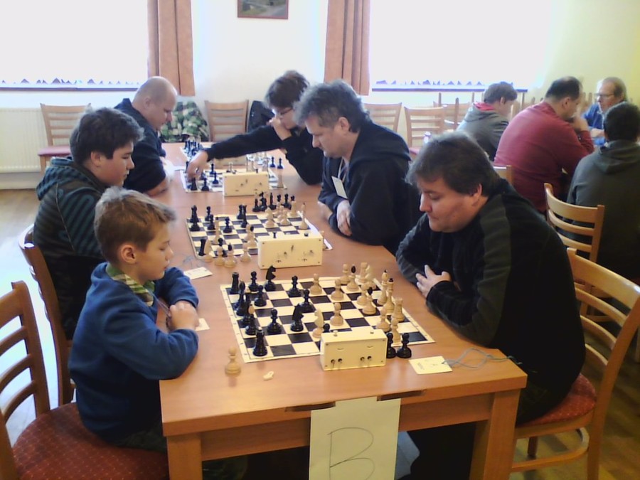 Letošní vánoční šachový turnaj proběhl v sobotu 8. prosince. Oproti loňskému ročníku jsme zaznamenali další nárůst počtu účastníků, tentokrát se klání zúčastnilo 19 šachistů. Hlavního rozhodčího Františka Macečka nezaskočí žádná situace a tak flexibilně upravil hrací systém ke všeobecné spokojenosti. Ze tří základních skupin se po několika hodinách zápolení vykrystalizovala finálová šestice, ve které měl domácí oddíl hned dvojnásobné zastoupení. Celkovým vítězem se stal pan Ota Kubíček z Dřevohostic. Na skvělém druhém místě se umístila nová posila našeho hradčanského oddílu pan Květoš Tatýrek a bronzovou medaili si odvezl do Přerova pan Roman Vaculík. Druhý nejlepší z Hradčan a celkově šestý byl Pepa Žákovský. Nejmladším šachistou turnaje byl teprve devítiletý Matouš Kubíček ze Křtomile, naopak nejstarším náš věrný šachový nadšenec pan Antonín Kundrát. Velké ocenění si zaslouží Laďa Zapletal, který se ke královské hře vrátil po několikaleté odmlce a hned obsadil pěkné deváté místo. Budiž to výzvou pro ostatní, kteří ještě váhají zda začít hrát nebo naopak si po letech přijít oprášit své kombinační schopnosti.