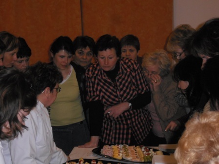 V sobotu 4. února 2012 jsme uskutečnili pro občany setkání s přednáškou a ukázkou studené kuchyně. Byla pozvána mistrová odborného výcviku z oboru kuchař - číšník paní Skasková, která si ještě vybrala pomocnici ze třetího ročníku Lenku Tomčíkovou. Měla připraveny tři rautové mísy, na kterých bylo několik druhů jednohubek, košíčků, trubiček plněné salámovou, lososovou a jinou náplní.Dále s učni připravila 12 druhů pomazánek a různých salátů.Každý účastník přednášky mohl ochutnat výrobky, které byly připravené na ochutnávku,ale hlavně se ptát paní mistrové na různé fígle a chutě při výrobě studené kuchyně.