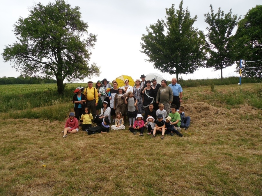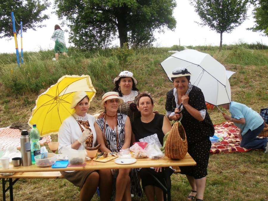 V neděli 3.6.2012 se uskutečnil piknik tentokrát mezi stromy na Výhoně. Přibližně 20 dospělých a 15 dětí v různých oděvech ve stylu 30.let se účastnilo této akce, což je o polovinu méně než-li v loňském roce. Nejprve proběhlo společné hodování domácích dobrůtek a poté se soutěžilo. Na děti čekalo celkem 7 soutěžních úkolů od slalomu s dětskými kolečky naloženými balonem, přes skákání v pytlích až po lanový přechod. I dospělí se účastnili 4 úkolů jako slalom s trakařem naloženým dítětem, „lyžování“ na prkně ve dvojici, překážková dráha s udržením míčku na pálce a nejvíce se pobavili na lanovém přechodě. Po zdolání všech úkolů čekala na všechny sladká odměna a poté se každý bavil po svém. Každý kdo chtěl si mohl zahrát kriket, volejbal či ringo. Bohužel z krásného odpoledne nás pomalu vyháněl mírný déšť. Ale i přes kapky deště jsme si stihli opéct a sníst voňavé buřty. Toto odpoledne tedy skončilo dříve než jsme chtěli díky nepříznivému počasí, ale i tak si každý odnášel dobrou a spokojenou náladu a odcházel s úsměvem na tváři.